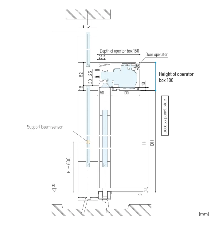- Height of the header is only 100mm, and can be integrated to the design of various entrances such as office building, shopping mall, etc.