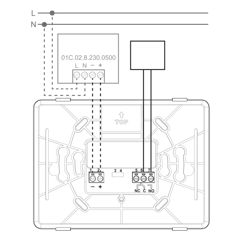 • 1 changeover contact rated 6 A – 230 V