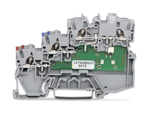 2000-5311/1101-951 - TOPJOB®S sensor LED terminal block; yellow LED; for NPN (low side) switching sensors; 2-pole; rail mount; 3-conductor; 7 mm wide; gray