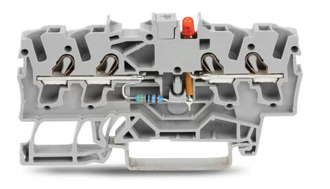 2002-1421/1000-434 - LED terminal block; red LED (PN); rail mount; 4-conductor; 5.2 mm wide; gray