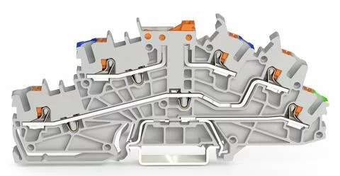 2203-6641 - Multilevel installation terminal block; with push-button; 2.5 mm²; with pivoting knife disconnect; NTi/L/PE; green-yellow lower deck; Push-in CAGE CLAMP®; 2,50 mm²; gray