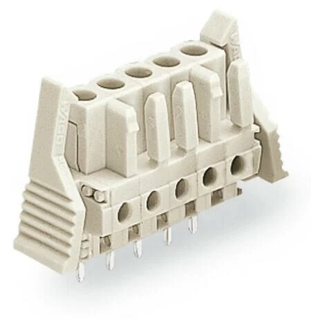 722-134/039-000 - THT female header; straight; Pin spacing 5 mm; 4-pole; 100% protected against mismating; Locking lever; 0.6 x 1.0 mm solder pin; light gray
